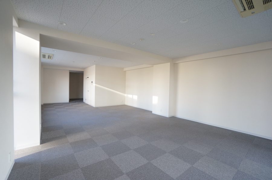 ワンフロアをそのままお使い頂いても良いですし、パーテーションや仕切りの造作を入れて空間に動きを加えても。