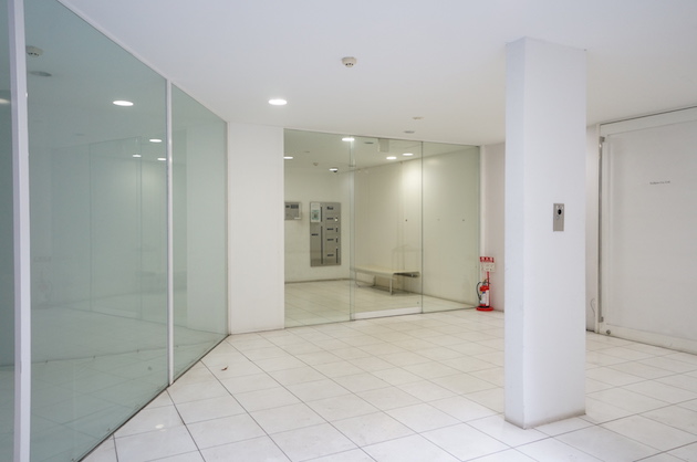 地下1階にある建物エントランスは、白で統一され明るく清潔感があります。