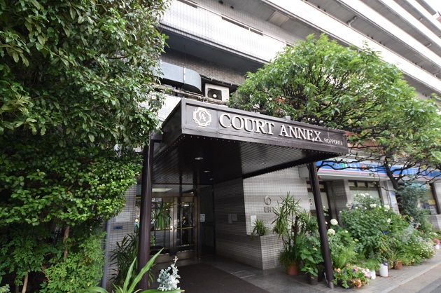 アドレスは西麻布3丁目。六本木ヒルズのすぐ隣の好立地です。外観はヴィンテージ感がありますが、エントランス付近はリノベーションされ緑もありホテルのようなラグジュアリーな雰囲気を醸しています。