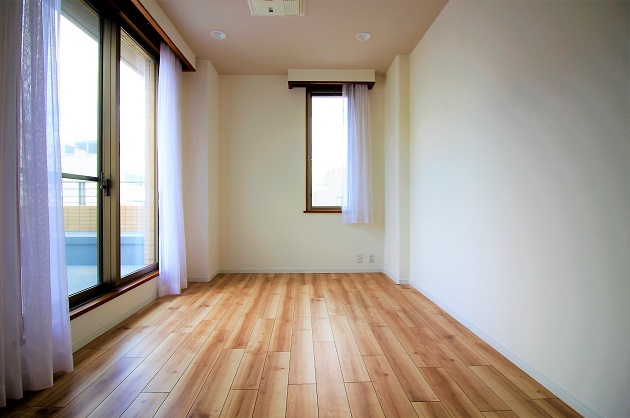廊下を抜けた先、奥の2番目に広いお部屋。こちらのお部屋からルーフバルコニーへと通じます。