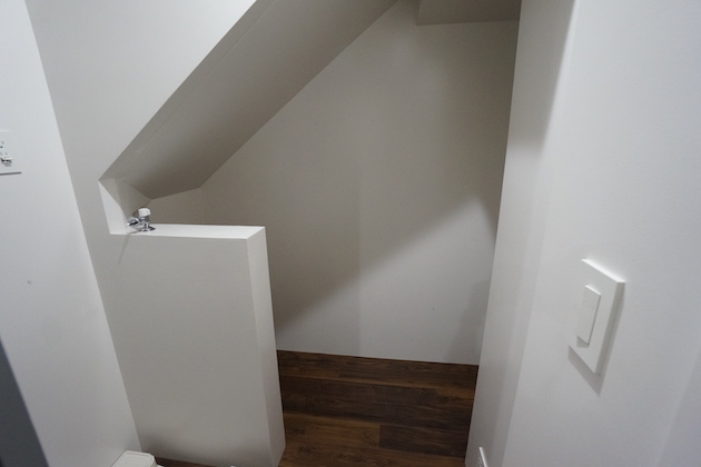 ストレージを階段下に作ることで、本来ならデッドスペースになるところを有効活用。奥行きと幅を持たせているので階段下といいながらも収納力は高めです。