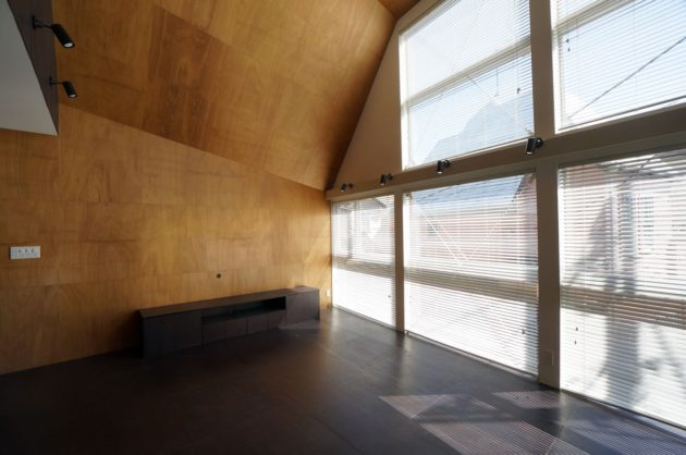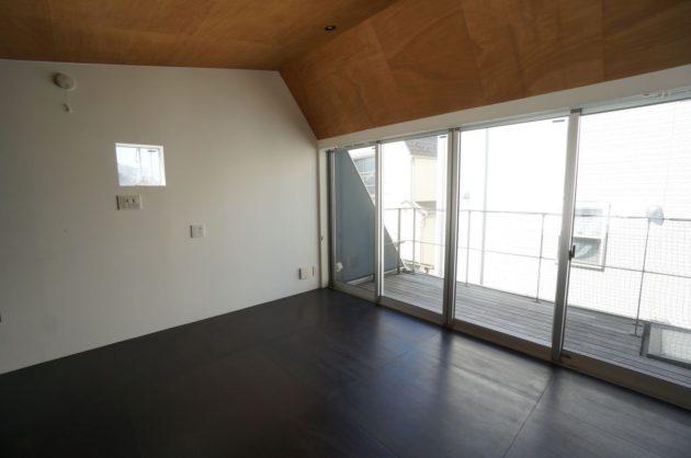 壁一面の大きな開口部から注ぎ込まれる日差しと木目調の壁がお部屋全体に温かみを与えてくれます。 日中は照明がいらないほど採光が豊かな空間です。