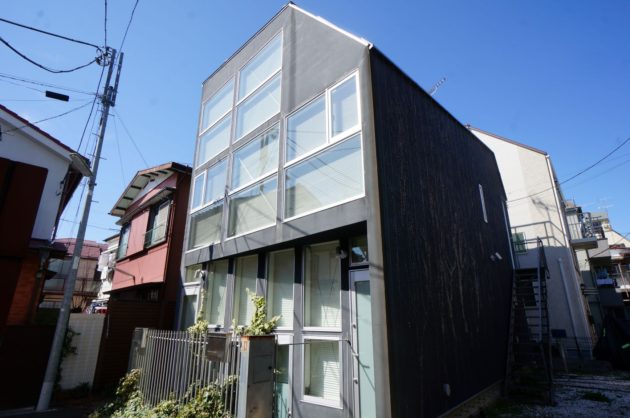 三軒茶屋は都営、東急、小田急バスなどが運行していているため交通が便利な立地。 茶屋通りから一本入った静かな住宅街に佇みます。 木造2階建てのガラスウォールが印象的な外観です。