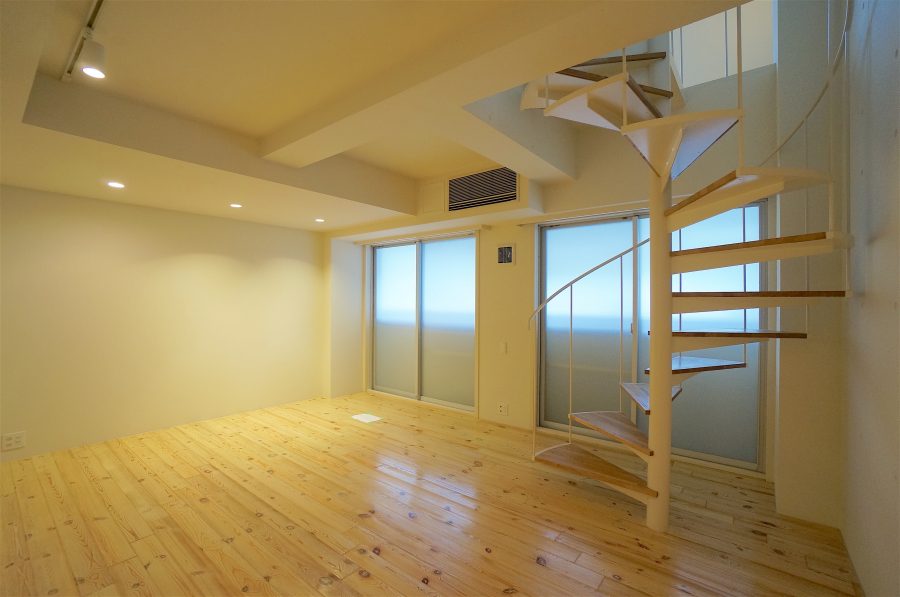 有効面積を少なくしがちなメゾネット階段も、螺旋タイプなのでさほど場所を取りません。