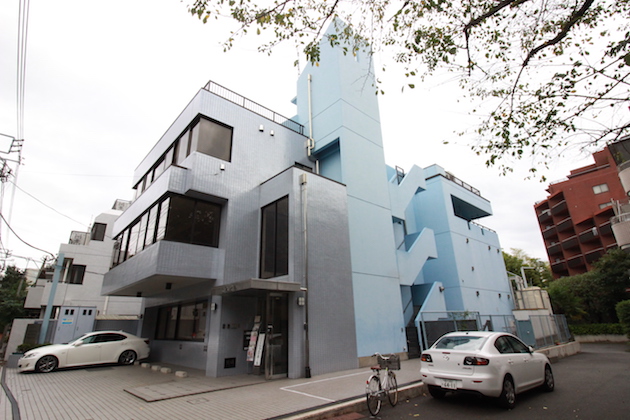 参宮橋駅から徒歩7分、静かな雰囲気が漂う地域に少々形の面白い雰囲気のオフィス物件。