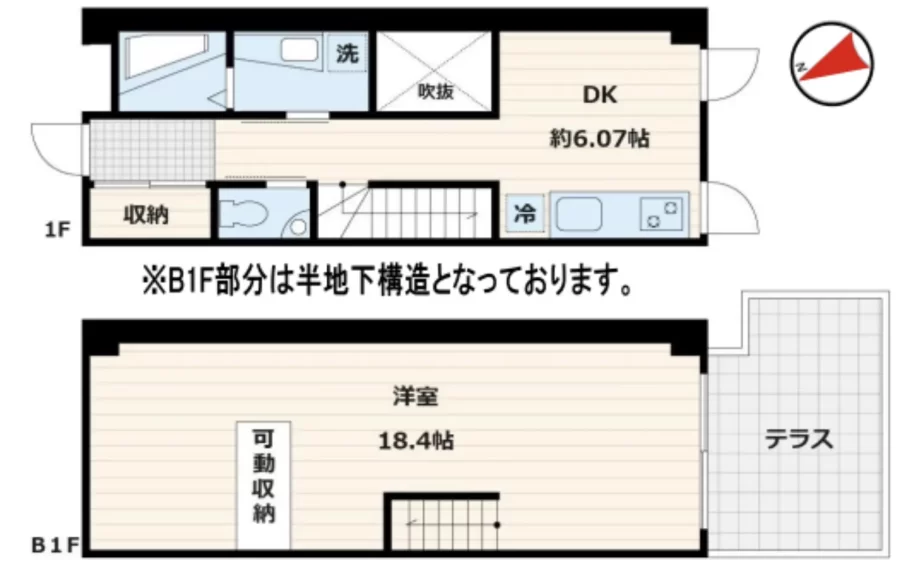 区画分けがしやすく人気のメゾネットタイプの当物件。