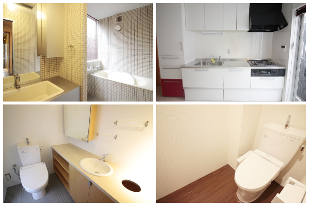 バスルームは2階、キッチンは3階、トイレは2階部分、4階部分の2か所に取り付けられています。