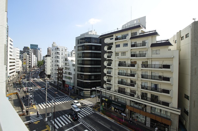 バルコニーからは明治通りが望めます。