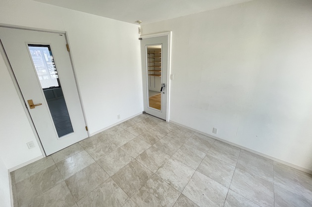 こちらは洋室部分になります。タイル張りの床と、ホワイトを基調としたエレガントな空間です。