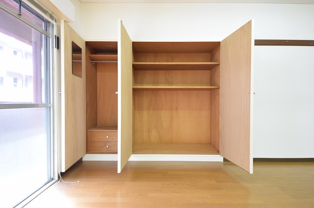 部屋の両サイドには、使いやすい間口が広めの収納棚が設置されており、部屋の有効スペースを損なうことなく荷物の収納が可能です。