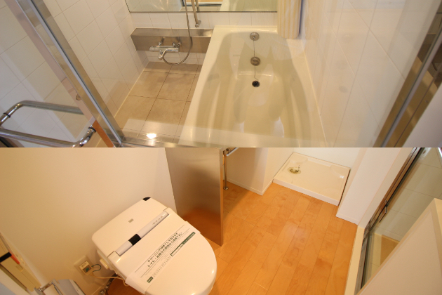 水周りも清潔感があり、コンパクトにまとめられています。バスはガラス張りで、トイレから見える仕様。
