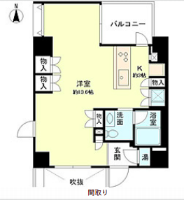 お部屋は13.6帖の広々としたワンルームタイプ。