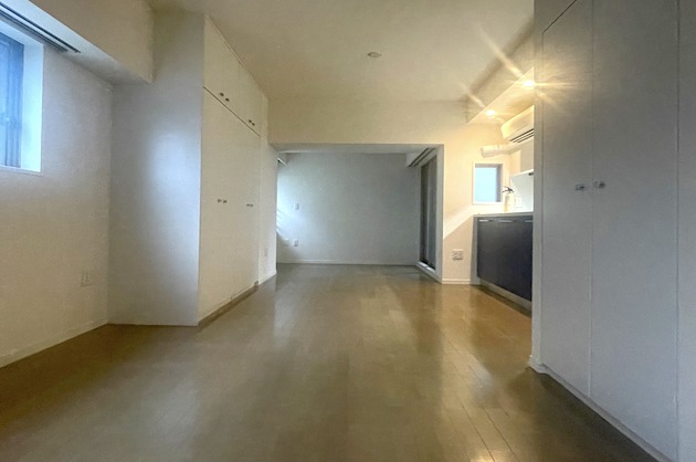 また、真っ白な壁面と光沢のあるフローリングが清潔感と空間に奥行きを与えます。