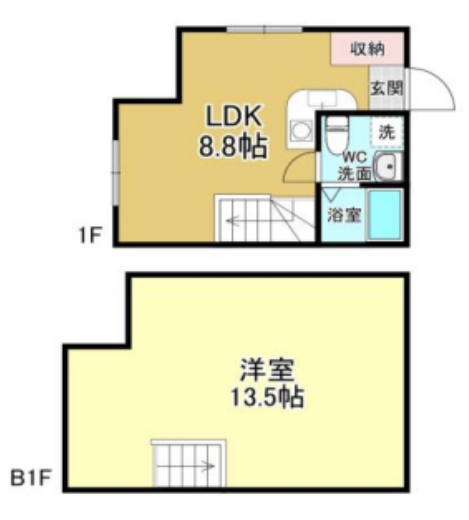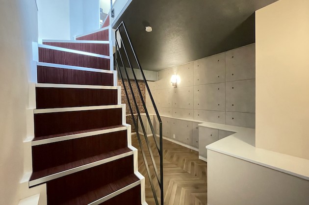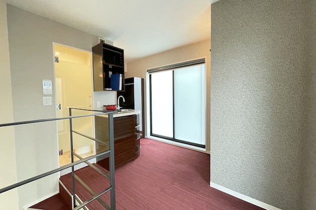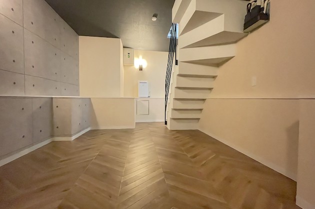 階段を降りると、洋室が広がっており、