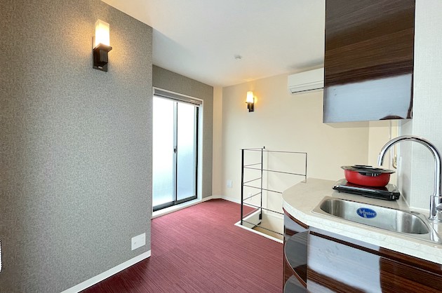 水回りはコンパクトでシンプルな作りで、部屋の雰囲気を邪魔しないデザインです。