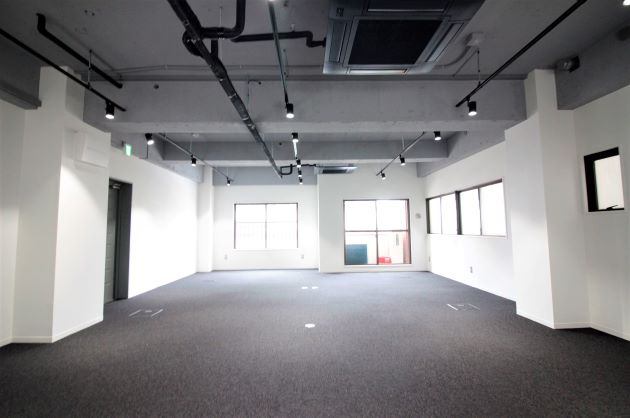 床はカーペット仕様、天井は抜かれており壁は白塗装です。