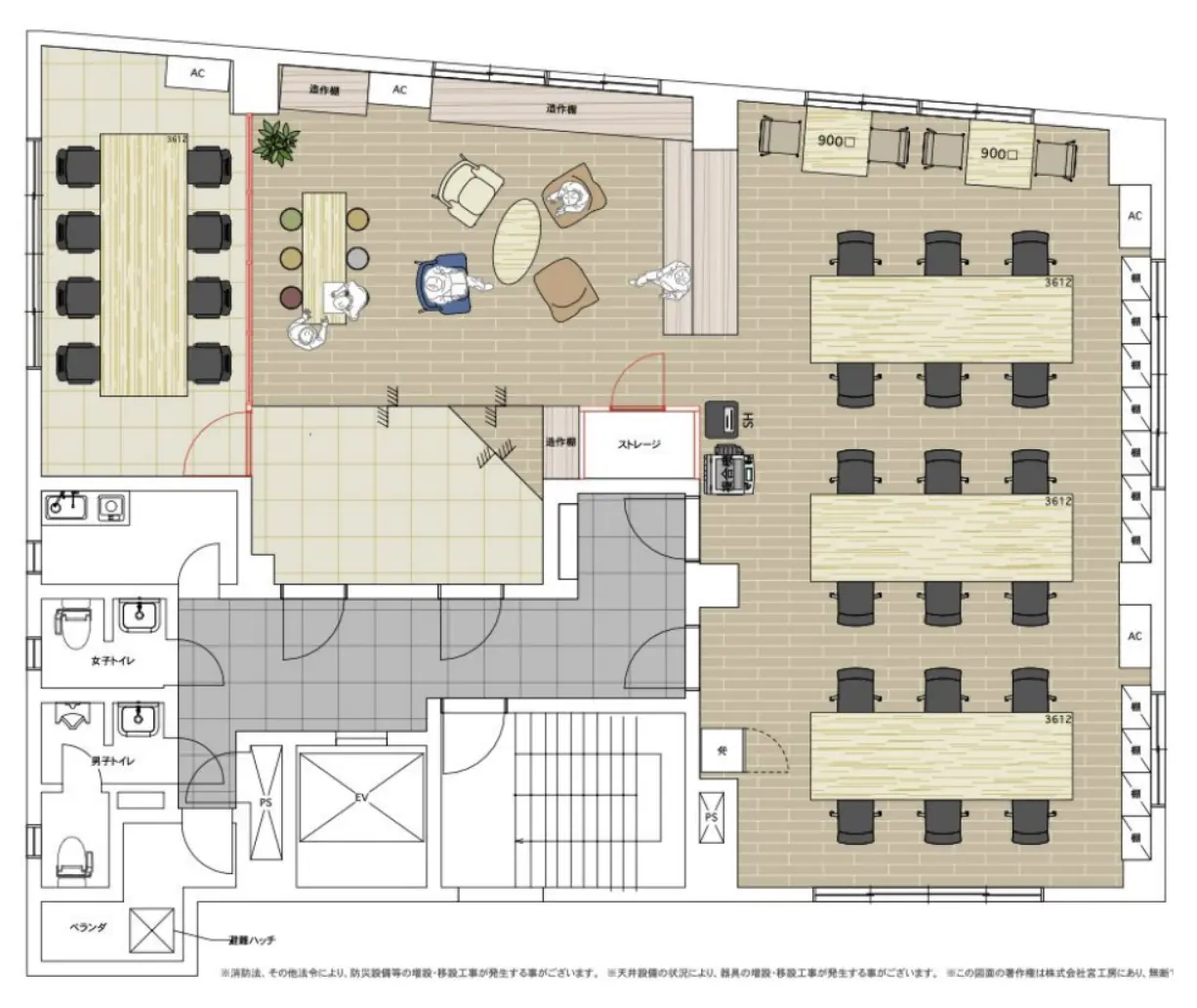 執務スペースの広さは18名〜20名程度でゆとりを持ってご利用いただくことができるサイズ感。