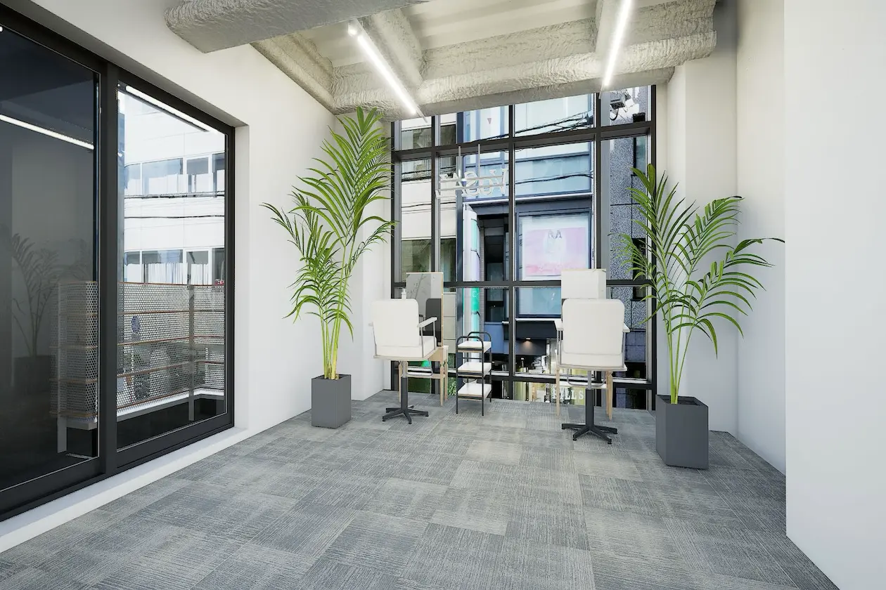 サロンなどの店舗使い方であればこちらのパースを参考にしていただければと。全フロア、スケルトン天井になっており、天高は3mと非常に開放的な空間が広がります。