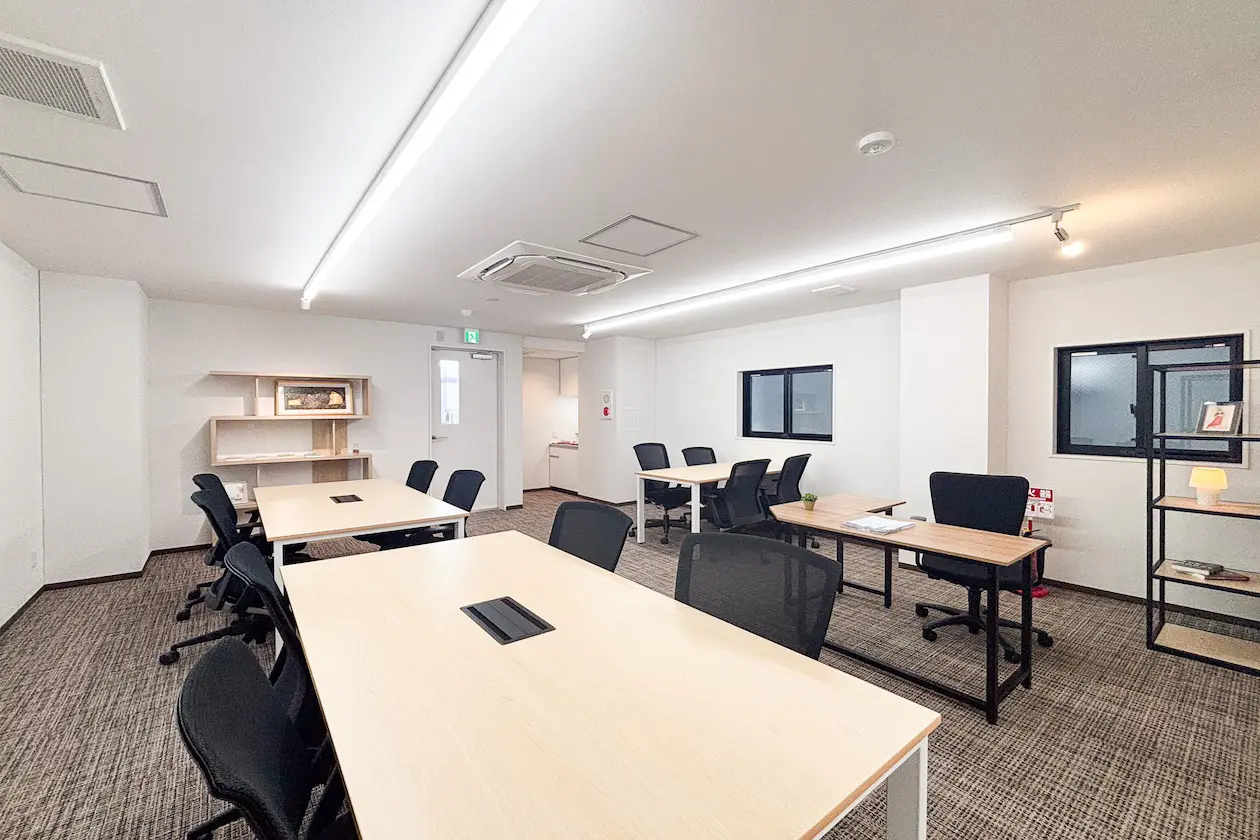 ワークスペースは15席を想定したレイアウトで、6名用・2名用の会議室も完備。チームワークを意識したオフィス環境が整っていますいます。