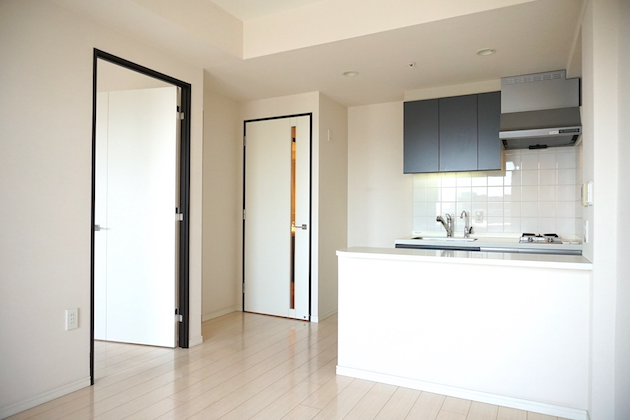小さいながらもカウンターキッチンや収納棚も備え付けてあるので、揃える家具も少なく済みそうです。