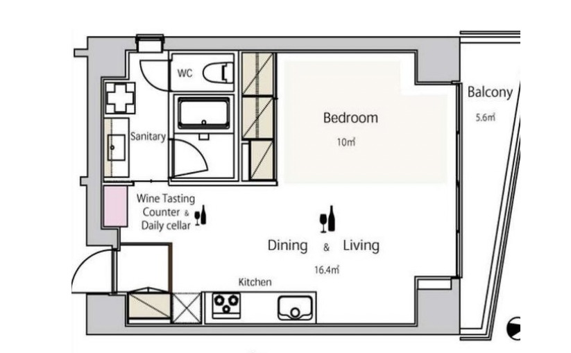 ワインを気軽に楽しむめるよう設計された居住空間。