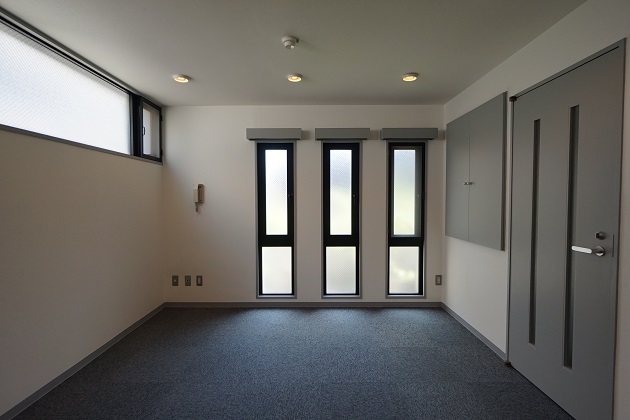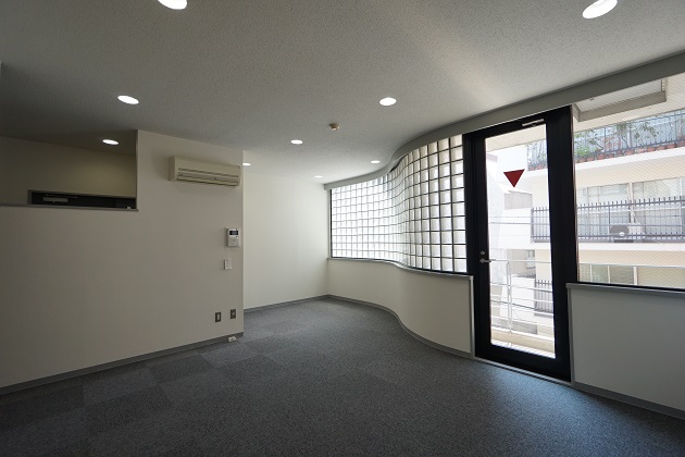 約9帖の部屋の中には大きめのクローゼットとトイレが付いており、住居兼事務所利用の場合はこちらを住居に充てるのも有りかもしれません。