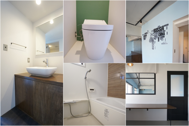 お手洗いやバスルームなどの水周りはデザイン性も高く、機能的な物に交換済み。