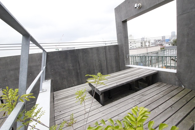 バルコニーはウッドデッキでできたテーブルとベンチがより一層快適空間にしてくれています。DIYせずとも素敵なバルコニーが付いているのは嬉しいですね。社員の憩いの場としてなど大いに活用できそうです。