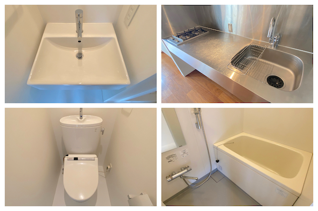 水周りスペースは全体的に広く快適。特にキッチンの大きさは、このサイズのお部屋にしては考えられないほど広いです。