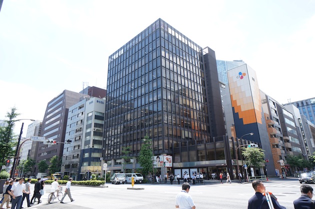 新橋駅から徒歩5分ほど、日比谷通り沿い交差点の角地という視認性の良い立地にこちらの建物があります。