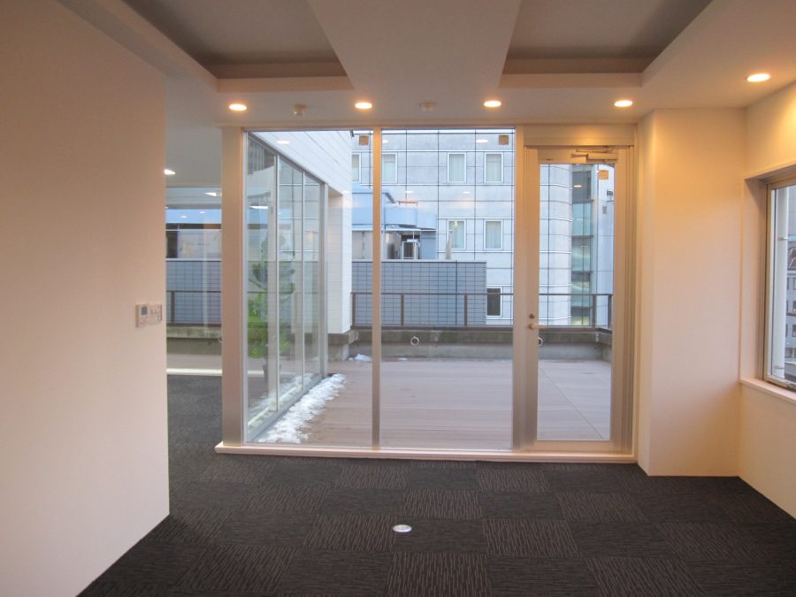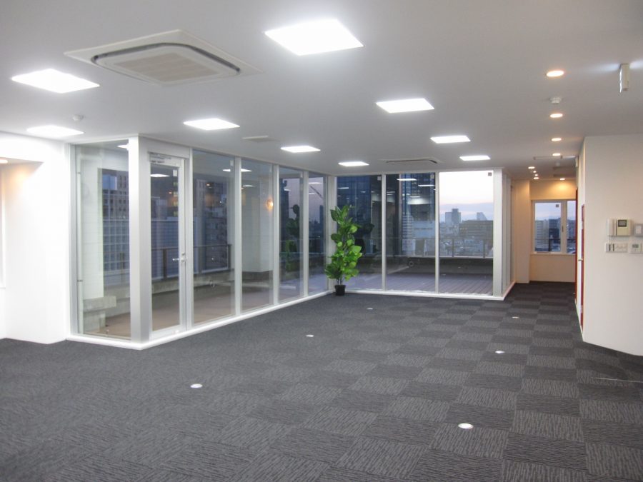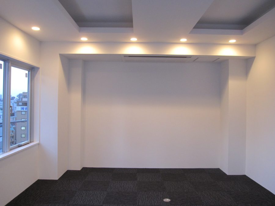 内装自体は比較的オーソドックスなオフィス内装、床材をフローリングに変更するだけで雰囲気はかなり変わるだろう。