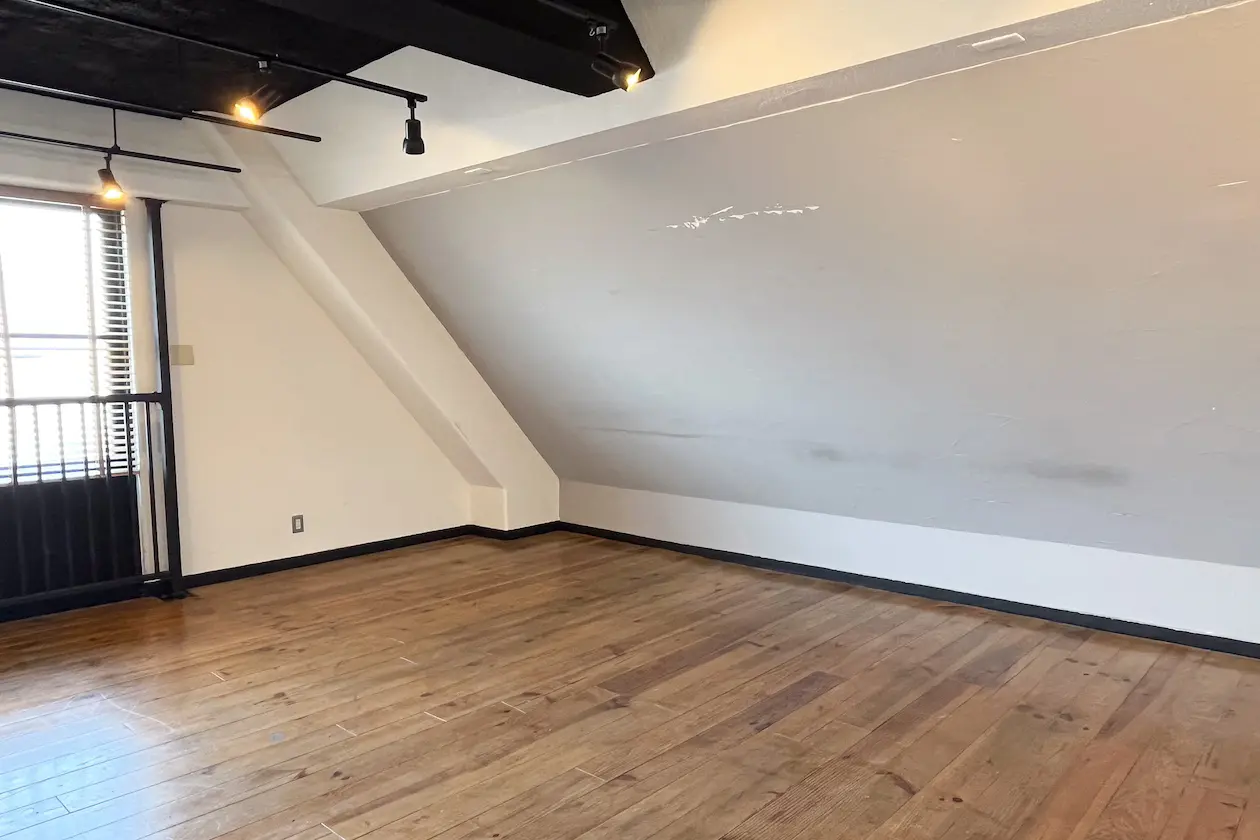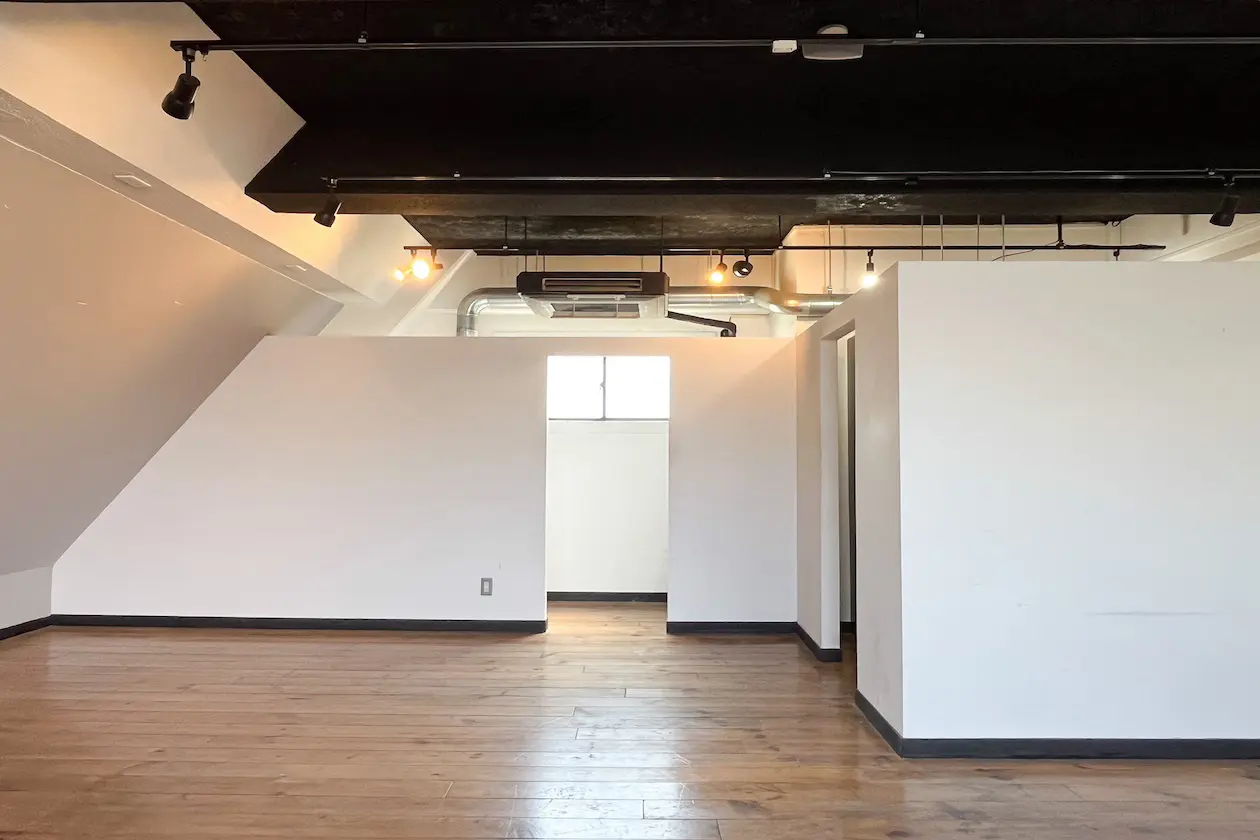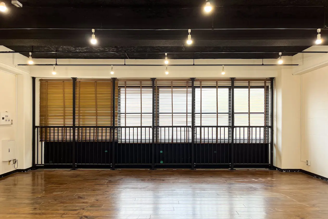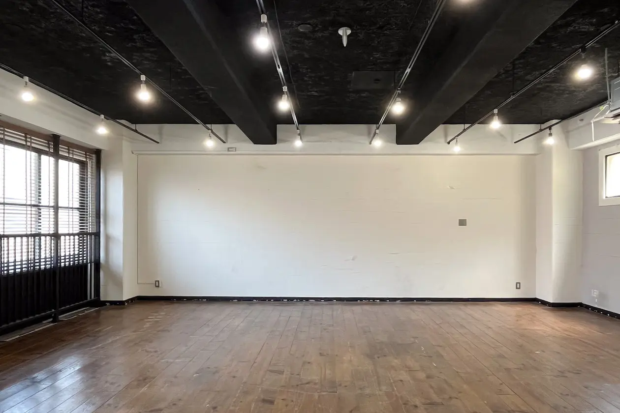 広々とした空間にライティングレールが部屋中を明るく照らしてくれるためダンス・写真スタジオとしての利用も可能です。