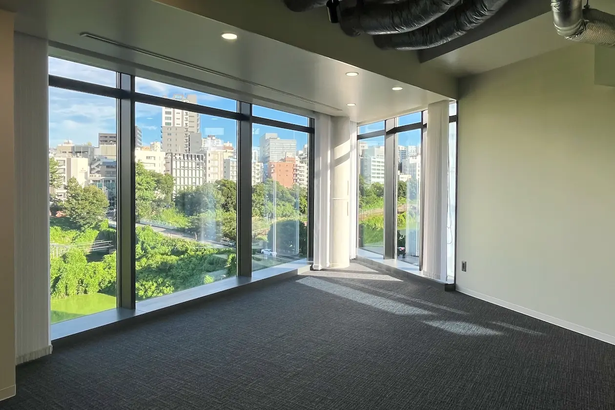 外堀の緑を望む約100平米のハーフセットアップオフィス