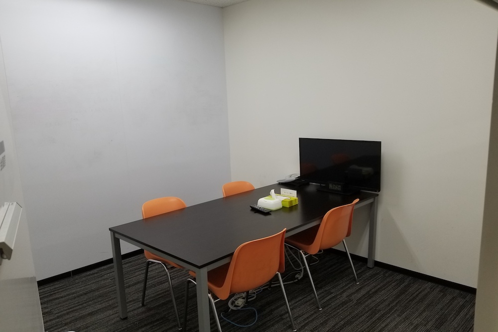 会議室には6人掛けのデスクが設置。