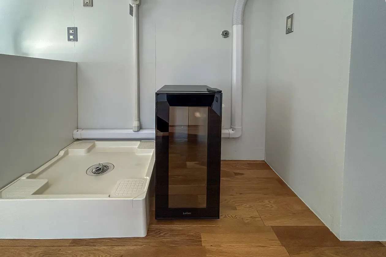 室内にはワインセラーが設置されており、業務の合間のリフレッシュや、大切なお客様をもてなすひとときにふさわしい一本を冷やしておくことができる、大人の余白を感じさせる演出も魅力的。