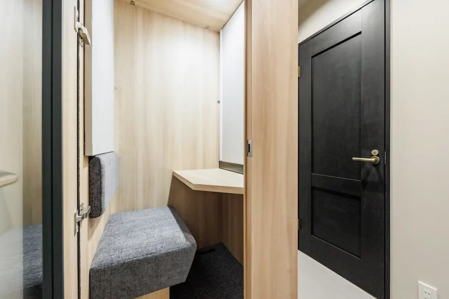 テレカンブースも両区画に設置されており、リモートでのミーティングや電話時も周りを気にせず行うことができます。