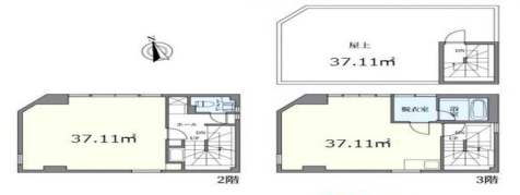 2,3F,屋上全て同じ間取りですが、それぞれ違った印象を持つようなお部屋となります。