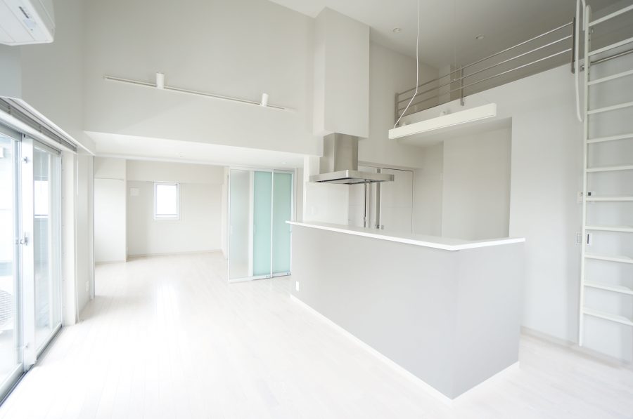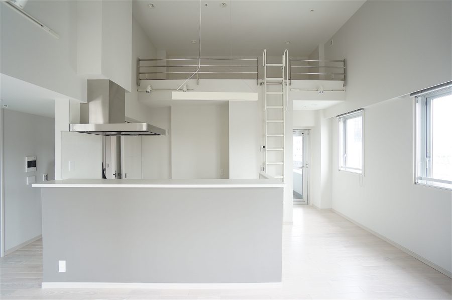 キッチン上のロフト部分はストレージのように活用してスタイリッシュなオフィス空間を目指したいですね。