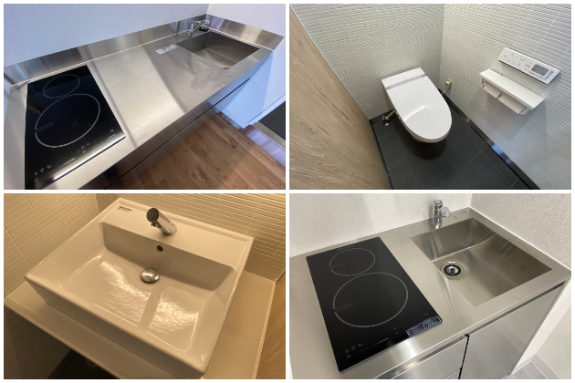キッチンは左上のものが1階、右下のものが2~4階に設置されています。
