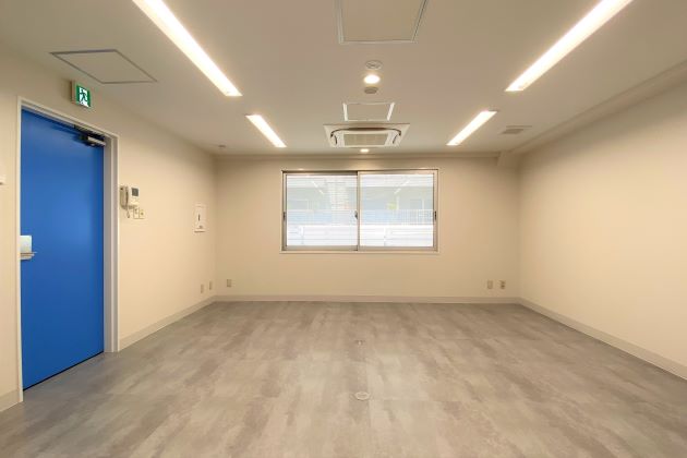 こちらは鮮やかなブルーのドアが印象的な2階のスペースです。一転してシックなデザインの約16坪。
