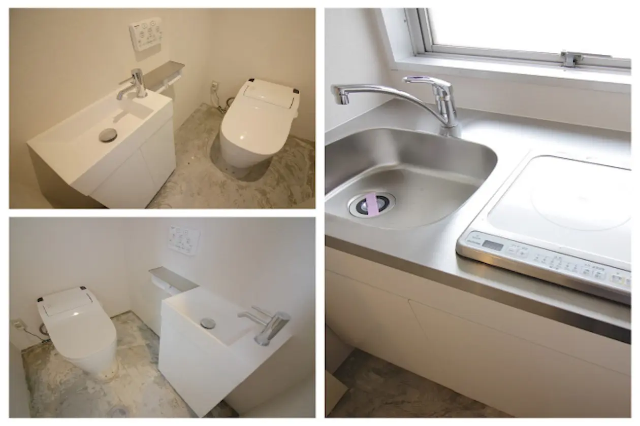 水回りは全て新品。トイレも2ヶ所、キッチンはコンパクトに。