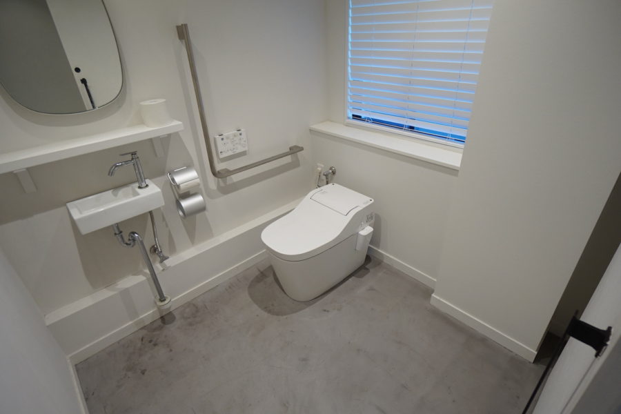 床はモルタル、壁天井は白塗装という無機質な内装です。