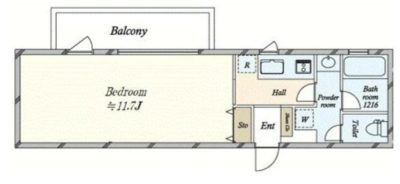 こちらは広さ19㎡ほどのワンルームの区画。