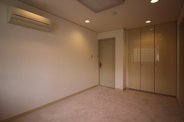 こちらは玄関を入ってすぐ左手にある8帖ほどのお部屋。ピンクのカーペットがラグジュアリーな雰囲気を作り出します。収納力抜群のクローゼット付き。ワークスペースだけでなくミーティングスペースとしてのご利用にもお使いいただけます。