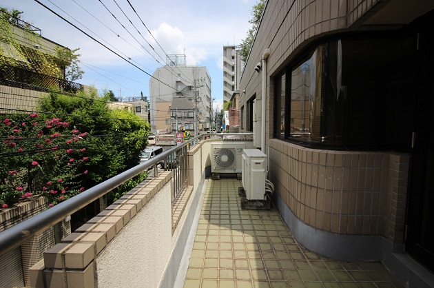 バルコニーの床はタイル張り。目の前の緑を見ながらリフレッシュできるスペースとしてご利用頂けます。