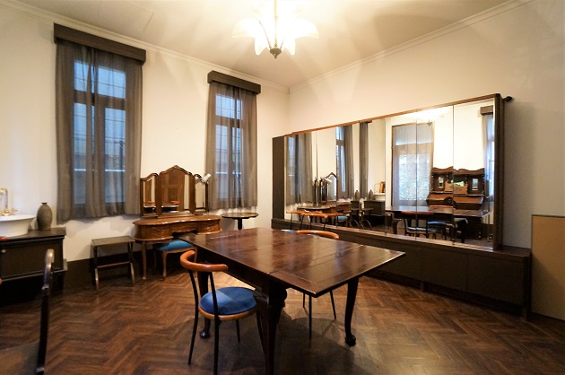 入口を入って右側にある1つ目のお部屋は、大きなタペストリーが印象的なお部屋。アンティーク調の家具が揃い異国情緒溢れています。コンセプトが合えば、撮影・展示スペースとして面白い空間になりそうです。
