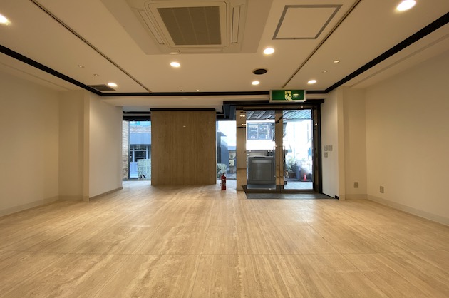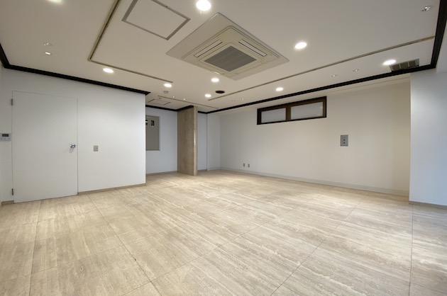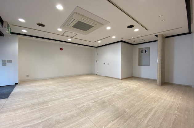 内装はダウンライトの天井に石調のタイルの床。
