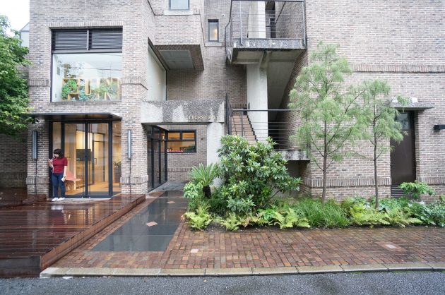 良い感じに味の出てきているレンガ調の外壁とグリーンが見事にマッチした建物。