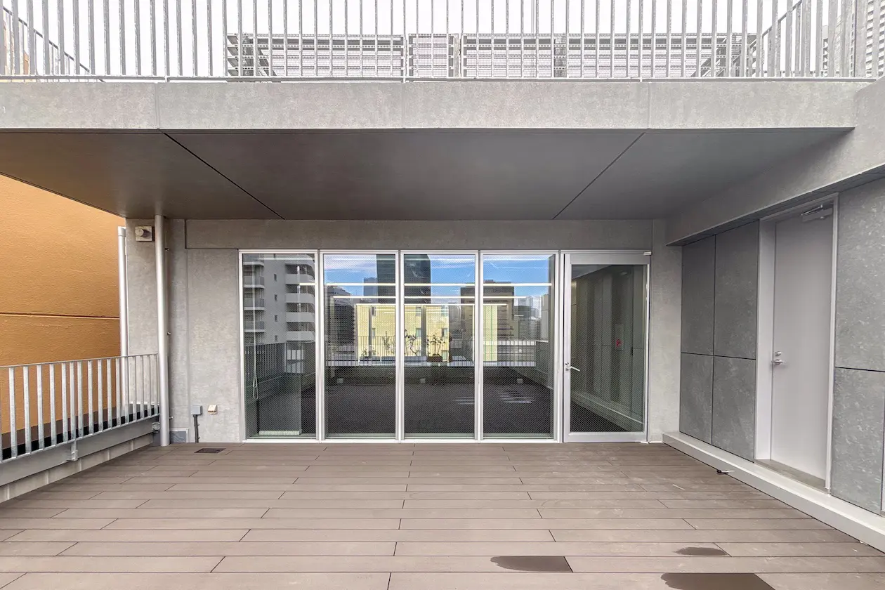 ゆとりある広さを確保したテラスは、視界が大きく開けた開放的な外部空間。周囲のビル群を見渡せる抜けのある眺望が、都心にいながらもリフレッシュできるひとときをもたらします。大きなガラス面が内外の境界を曖昧にし、オフィスにいながらも外の開放感をしっかり取り込める設計です。