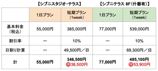 必要日数に合わせて料金プランをご提案させていただきますので、お気軽にお問い合わせくださいませ。